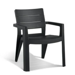 Wil jij een strakke, moderne blokstoel in je tuin? Ga dan voor de Allibert stapelstoel Ibiza antraciet. De stoel is gemaakt van kunststof, dus sterk met een draagvermogen van 110 kg, licht van gewicht en makkelijk schoon te maken. Dankzij de speciale afwerking heeft deze stoel een ‘houtlook’ en is daarom erg goed te combineren met een houten tuintafel. De grafietkleur maakt de stoel stijlvol van karakter en passend in vrijwel iedere tuin. Dankzij de rugleuning en armleuningen zit de Ibiza-stoel erg comfortabel en bovendien neemt de stoel weinig ruimte in beslag, aangezien deze stapelbaar is. Je bergt ze binnen een mum van tijd op. Zoek je een andere kleur? Dat komt goed uit, want GAMMA heeft deze Ibiza-stoel ook in een beige en groene variant. Kortom: comfortabel zitten doe je op de deze stoel uit de Ibiza-lijn.