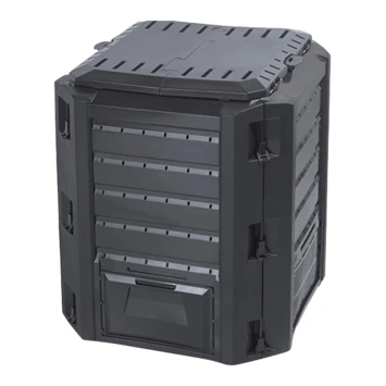 Met deze lichte maar toch stevige composter creëert u het hele jaar door uw eigen mest. Het gebruik van een composter bespaart meststoffen, kosten voor het afvoeren van recyclebaar afval en zorgt ervoor dat uw tuin of buitenruimte schoon en netjes blijft. U kunt er uw tuinafval samen met uw keukenafval in verwerken. U kunt het compostvat het hele jaar gebruiken, dus ook in de winter. Deze zwarte tuincomposter met schuif en groot deksel is gemaakt van PVC en heeft een inhoud van 380 liter. De afmetingen zijn 82,5 cm hoogte, 72 cm breedte en 72 cm diepte.