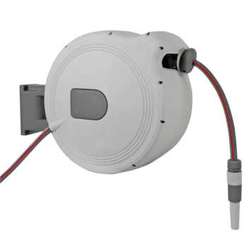 …De Talen Tools wandslangenbox compleet 30 meter maakt het sproeien erg eenvoudig en comfortabel. De slang wordt bevestigd aan de muur en is 180 graden zwenkbaar. Met weinig inspanning kun je de slang uittrekken en stoppen op iedere gewenste lengte. Met een korte ruk aan de slang rolt de slang weer automatisch op. De slang is 30 meter lang en heeft de gangbare diameter van 13 mm (1/2 inch), dit zorgt voor een hoge waterdoorstroom. Je kunt de slangenbox eenvoudig van de wandbevestiging afnemen om deze veilig op te bergen, bijvoorbeeld bij vorst. De wandslangenbox wordt compleet geleverd met een slang van 30 meter, aansluitslang van 1 meter, traploos verstelbare tuinspuit, twee slangstukken en een kraankoppeling