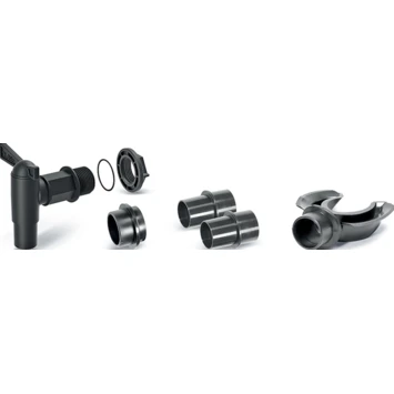 Aan- en afvoersysteem voor regenwater. De kraan is voorzien van een extra pakking en een moer, waardoor het compatibel is met alle Waterform regenwatertanks. De set bevat 5 elementen: verloopstuk; watervanger; kraan.