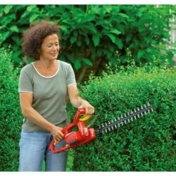 De Wolf-Garten elektrische heggenschaar HSE55V beschikt over diamantgeslepen messen voor een optimaal snijresultaat. De messtanden bieden de mogelijkheid om de bovenkant van de heg recht te snoeien of de zijkanten in hoeken van 45° en 90°, zonder dat de handen daarvoor een andere positie hoeven in te nemen. Dit maakt niet alleen het werken gemakkelijker dan ooit, maar geeft ook de meest precieze tuinier exact wat hij of zij nodig heeft. De HSE55V is uitgevoerd met een 55 cm lang schaarblad, waarvan de messenafstand 22 mm bedraagt. De heggenschaar is uitgevoerd met een motorvermogen van 500 watt. De heggenschaar blijft in elke (gedraaide) positie van het schaarblad perfect in balans. De HSE55V wordt inclusief beschermkoker geleverd.